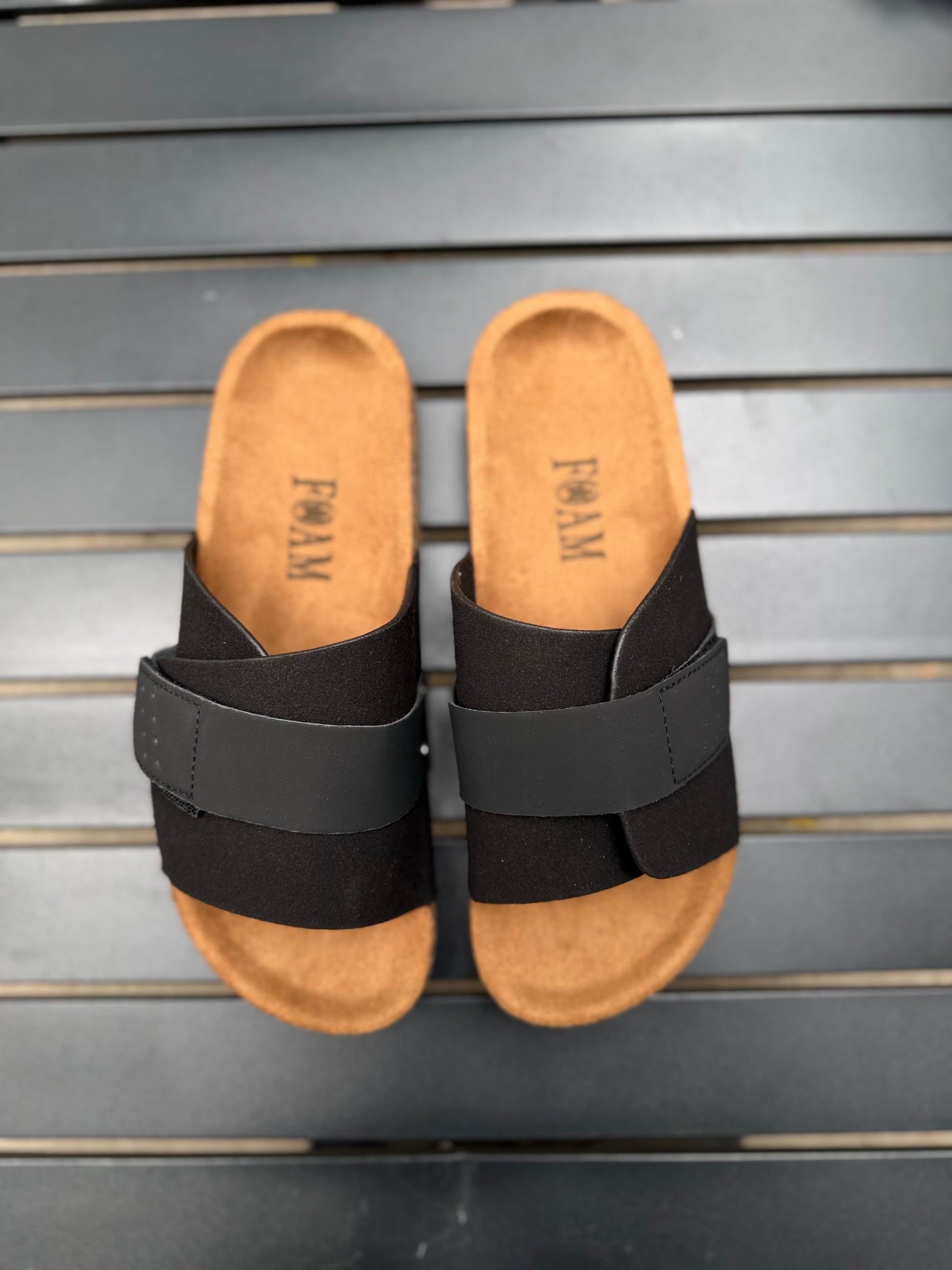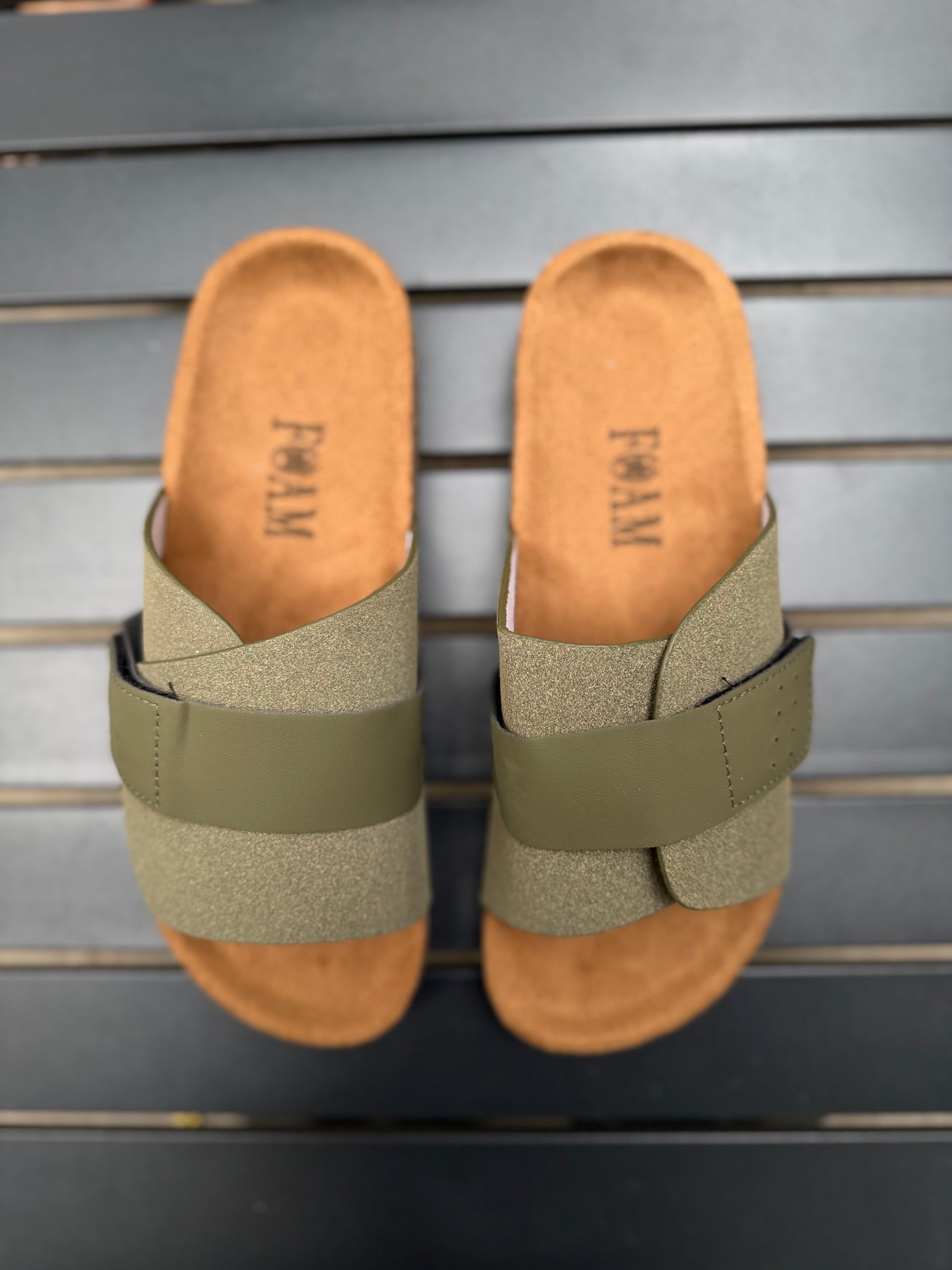 Contoured Cork Footbed: The heart of the slide is a natural cork-style midsole that mimics the shape of a healthy foot, providing arch support and a cupped heel for stability.